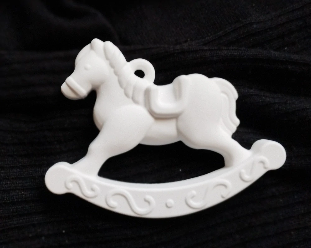 Koníček z umělého kamene, vhodný k zavěšení, baleno v celofánovém sáčku. Rozměr: 9x7cm.