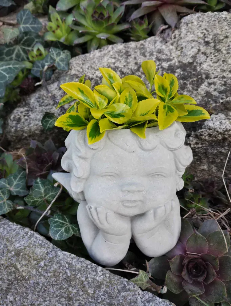 Buclatý andělíče, obal na květinu viz foto. Materiál beton.