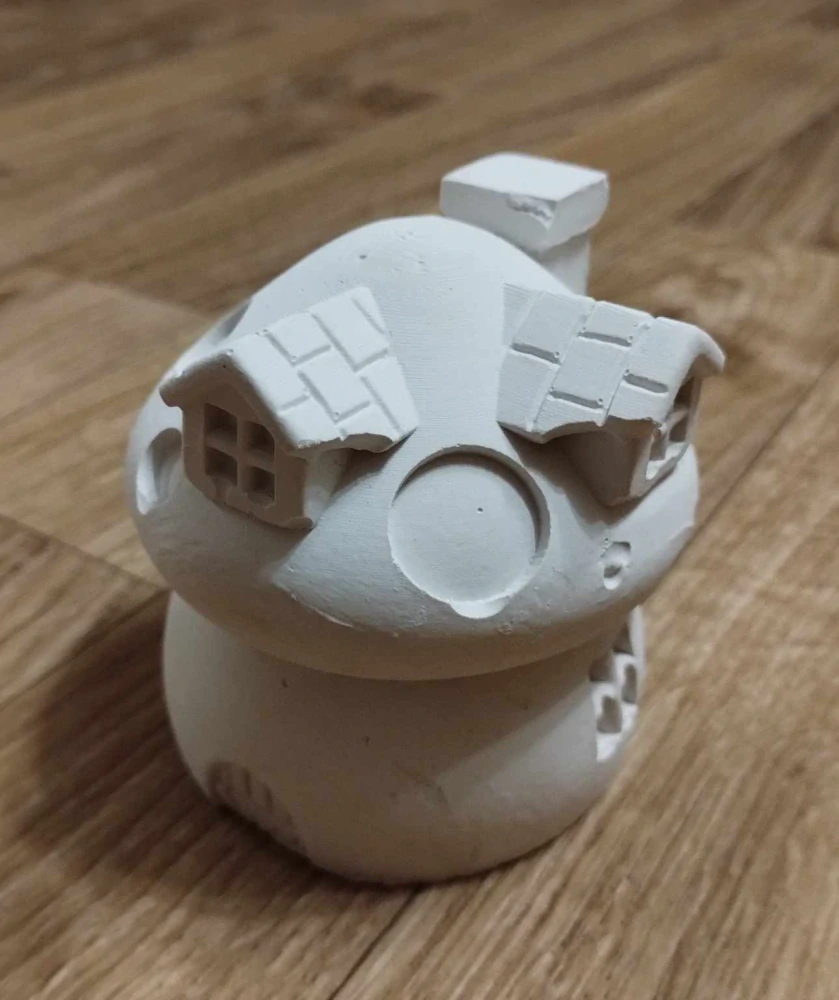 Domeček z efkopuru (odlehčená litá hmota). Vhodné k domalování vodovkami, temperami, akrylovými barvami, fixami na kamíky apod.