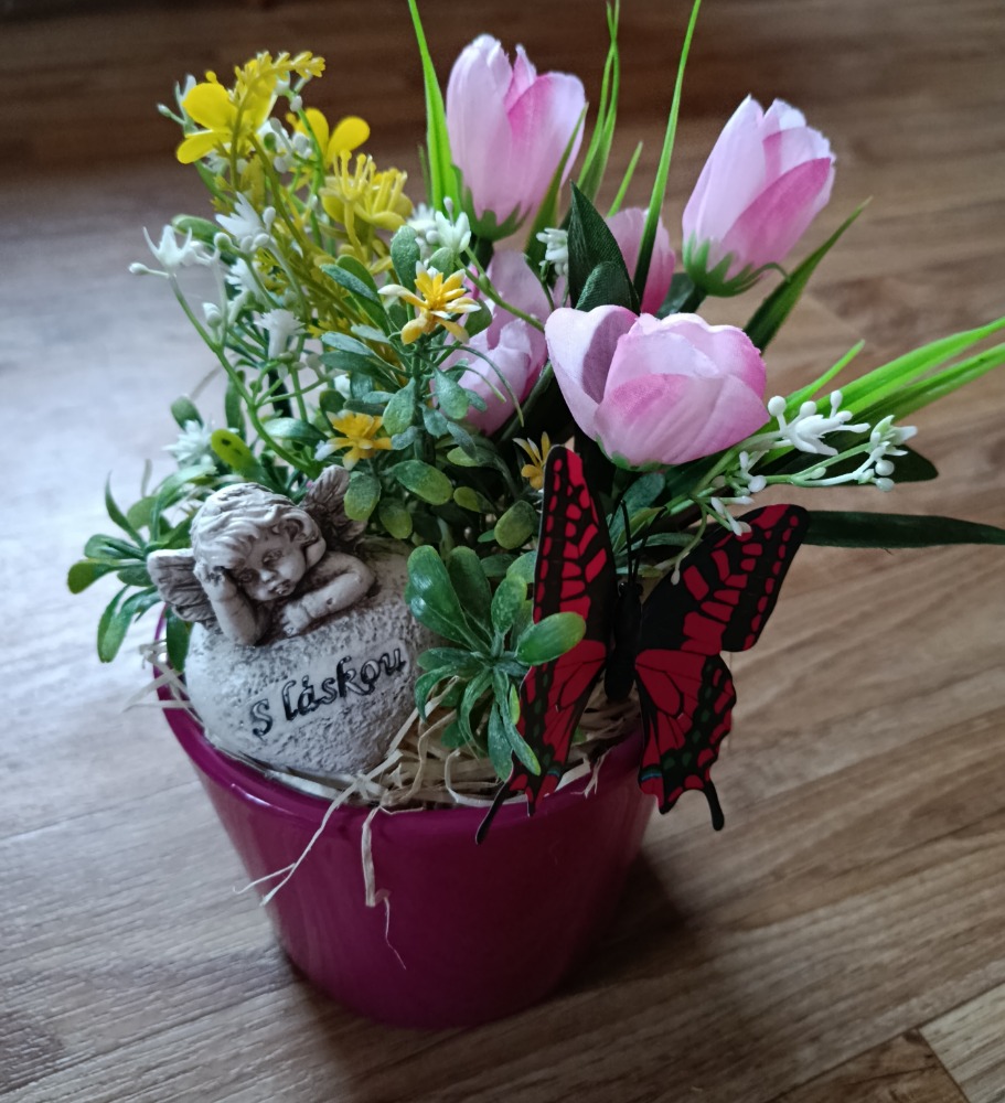 Jarní smuteční dekorace v růžovém obalu s andělíčkem a srdíčkemNení skladem199 Kč/ ks