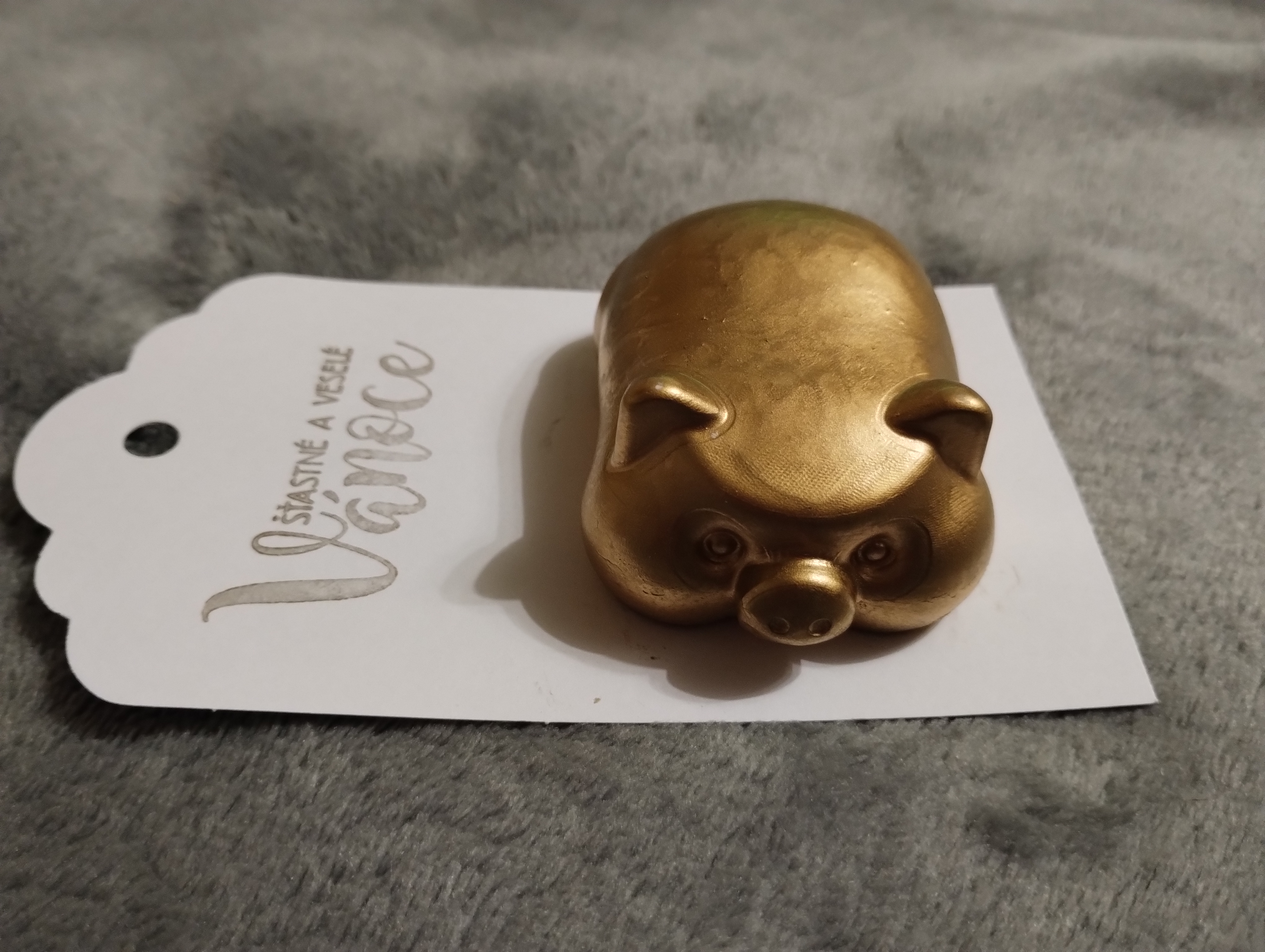 Prasátko zlaté barvy s nápisem Šťastné a veselé VánoceSkladem 4 ks35 Kč/ ks