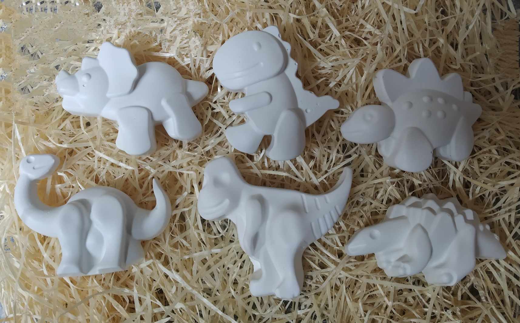 Sada sádrových magnetek ve tvaru dinosurů. V sadě 6 ks, je možné že se v odlitku objeví bublinky.