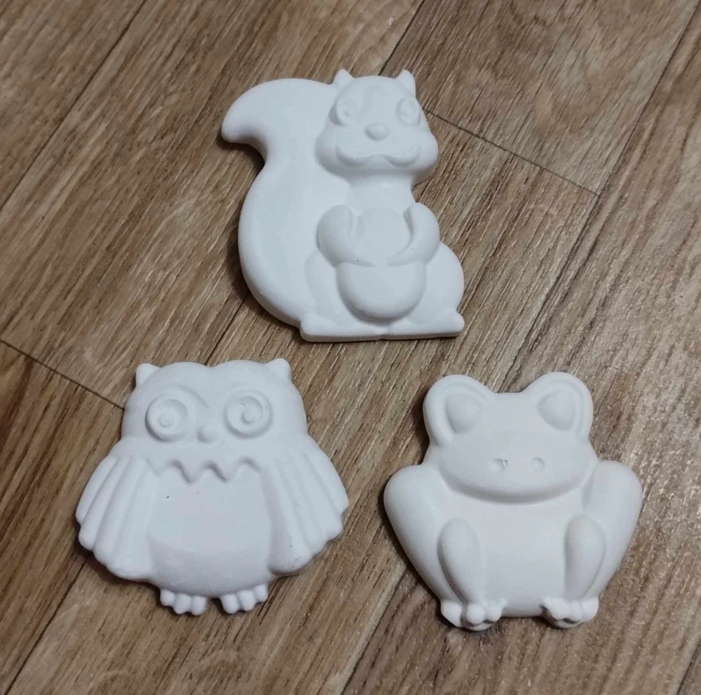 Sada magnetek z efkopuru (odlehčená litá hmota). Vhodné k domalování vodovkami, temperami, akrylovými barvami, fixami na kamíky apod.