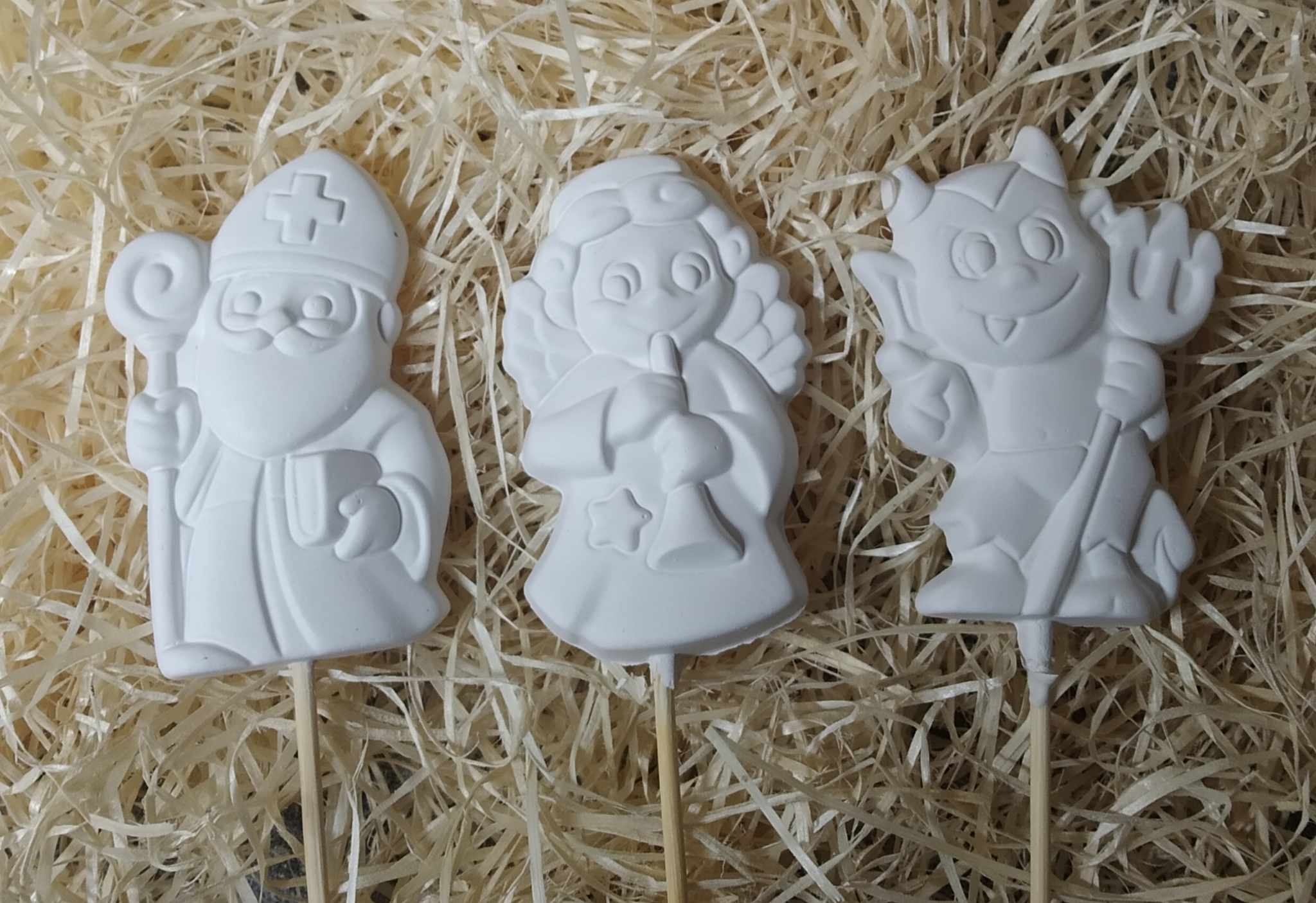 Sada sádrových zápichů ve tvaru Mikuláš, anděl a čert viz foto, je možné že se v odlitku objeví bublinky.