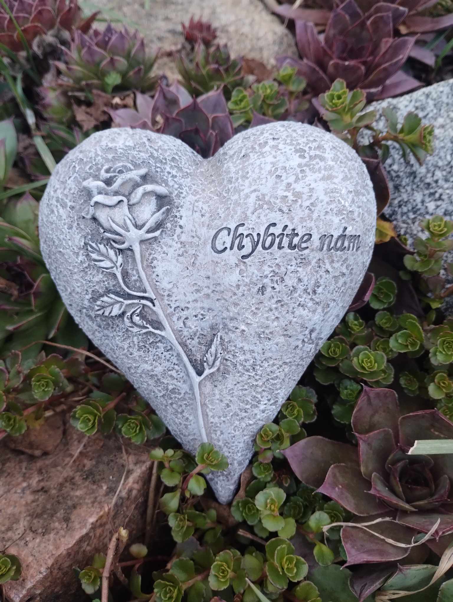 Smuteční srdce s nápisem je vyrobené z polystonu. Nabízíme ho v šedém provedení.