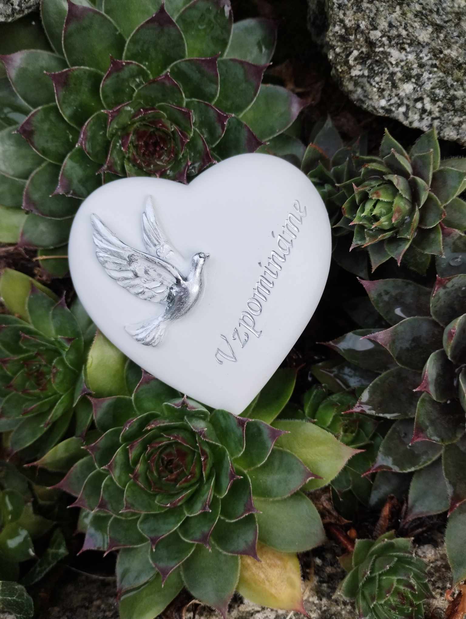 Srdíčko s holubicí - Vzpomínáme je vyrobeno z polystonu.