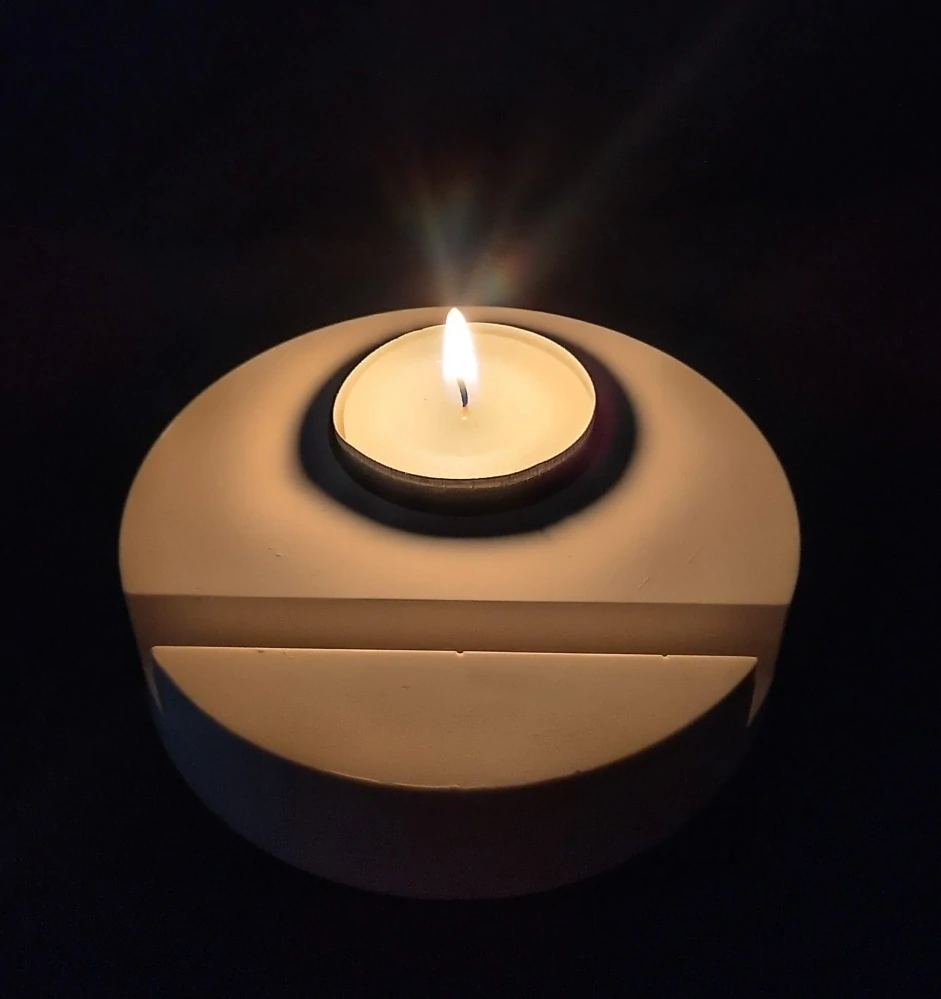 Svícen kulatý o průměru 10,7 cm, otvor na elektronické světýlko LED. Pouze na elektronické svíčky!!!