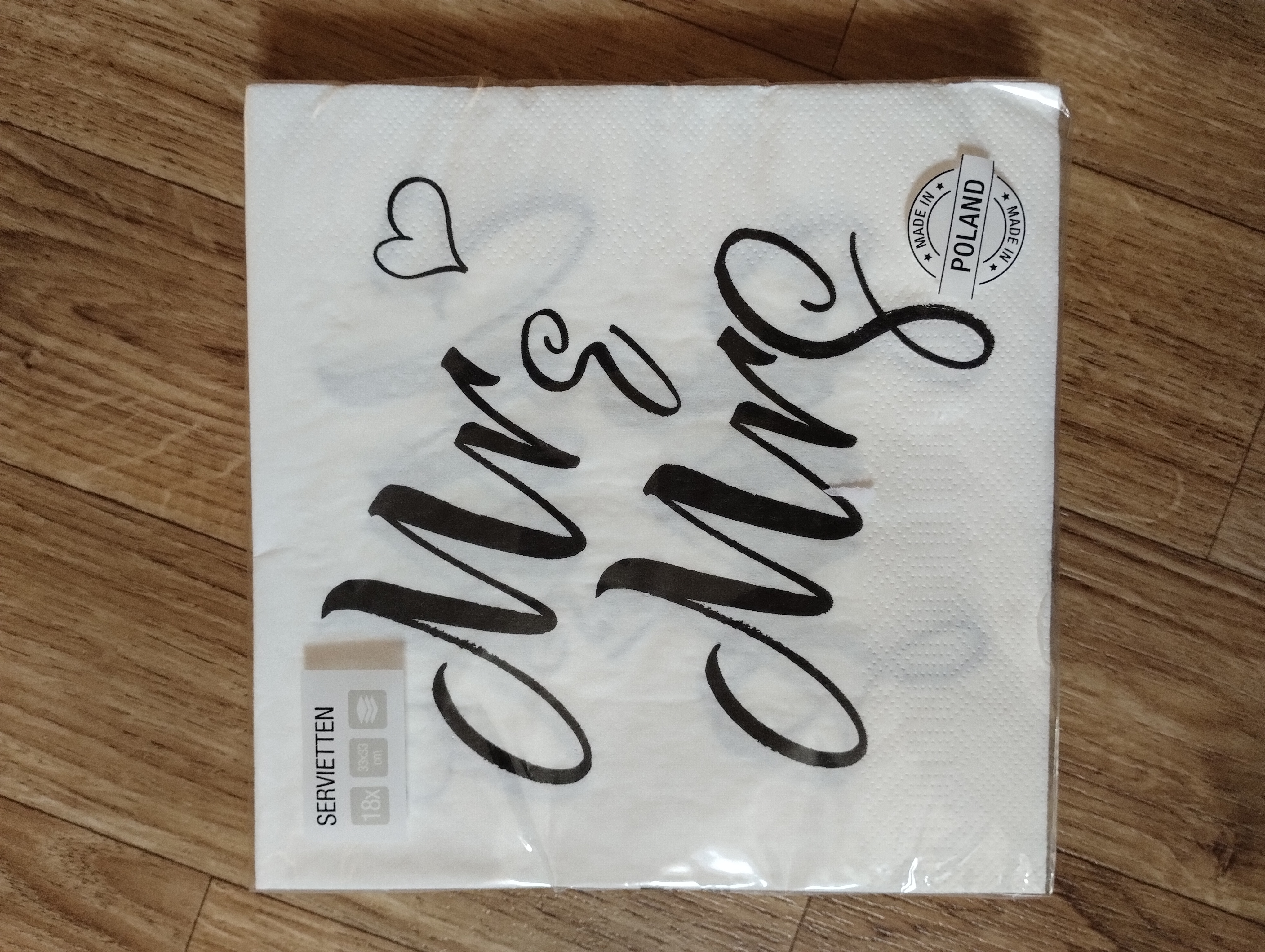 Svatební ubrousky 18ks v balení, rozměr 33x33cm rozložené. 3 vrstvé