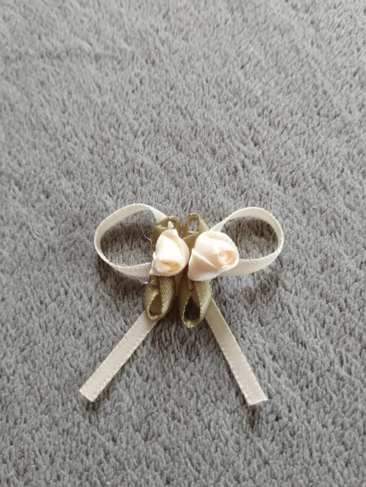 Mašlička s růžičkami , slouží k ozdobení klopy svatebčanů. Mašlička je ze saténové stužky, je ozdobená párem růžiček.